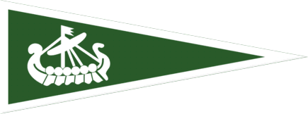 The flag of Sandefjord Roklubb in Sandefjord is green with a white border and a white Viking longship.
