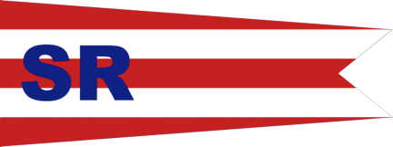red-white-red-white-red swallowtail pennant with SR in blue letters near the