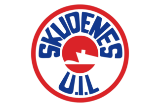 The flags of Skudenes IL (Skudenes Ungdoms- og Idrettslag) from Skudeneshavn in Karmøy Municipality is white with the badge centered.