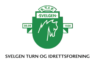 The flag of Svelgen TIF (Svelgen Turn og Idrettsforening) from Svelgen in Bremanger Municipality is white with the badge centered.