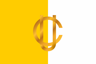 See http://americaninlima.com/2009/07/24/politicians-crisis-water-peru/ for a UFE, at least to me: a horizontal yellow/white flag with a golden interwoven "UC" monogram. A university?