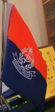 the top and at the bottom SINDH POLICE. Both texts are in white, separated by