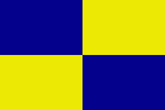 The plain flags have been gyronny of eight of yellow and blue (see left image above) or erroneously gyronny of eight of blue and yellow (see right image above).