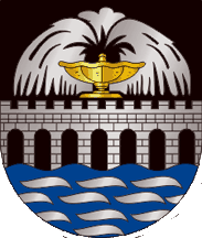 These arms and flag were adopted upon the upgrade of the municipality seat to city status on 2 July 1993 and are a trivial change of the former arms, which included four visible crown towers (town rank); the previous background was plain white, so the flag change was not trivial.