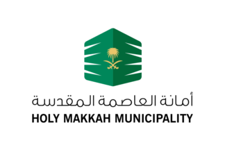 The flag of Mecca is white with logo.