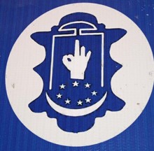 hand making an "okay" gesture above a ring of eight five-pointes stars, above a