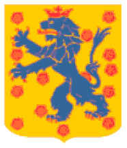 On yellow background strewn with red roses (9 usually) a blue lion crowned and