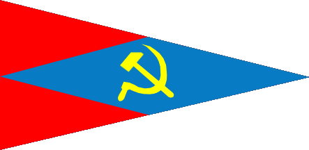 Blue-red pennant, yellow hammer and sickle.