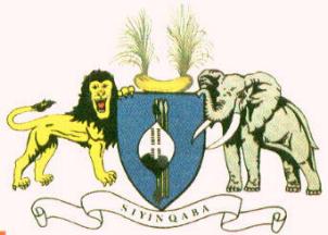 The two supporters are the symbols of power for the King (lion) and the Queen-mother (elephant). The shield is a typical Nguni shield used in the country. The weapons on the shield are typical local weapons. The colour of the shield is derived from the King's own regiment. Siyinqaba means: We are the fortress "We are a tower of strength".