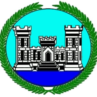 Before 2025, a different emblem had been used. A white castle on a blue background inside an olive wreath