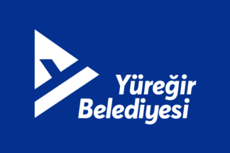 The flag of Yüreğir is celestial blue (photo) or white (photo) with the municipality's emblem. "Belediyesi" means "Municipality".
