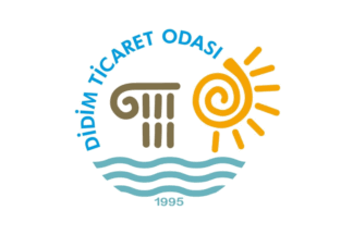 The flag of Didim (photo) is white with the municipality's emblem, which features two columns representing the ruins of Didyma, the major Anatolian sanctuary dedicated to Apollo. "Belediyesi" means "Municipality".