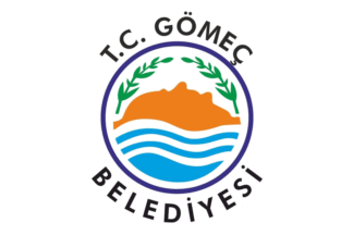 The flag of Gömeç (photo) is white with the municipality's emblem in the middle. "GÖMEÇ BELEDİYESİ" means "Gömeç Municipality".