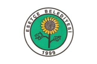 The flag of Esetçe is white with the municipality's emblem. "Belediyesi" means "Municipality".