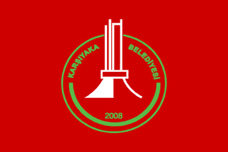 The flag of Karşıyaka (photo) is red with the municipality's emblem. The flag is also used vertically, white with the municipality's emblem (photo). "Belediyesi" means "Municipality".