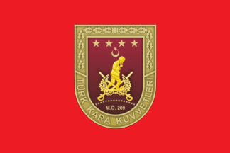 The flag of the Turkish Land Forces (photo) is red with the forces' coat of arms in the middle.
