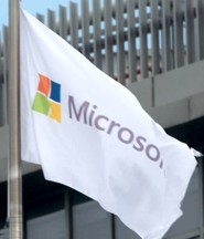A ~1:2 plain white flag with the Microsoft lettering logo on it in black is