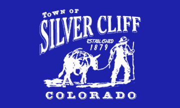 The flag of Silver Cliff can be seen flying at the town hall on Google Maps. It is white with the town logo centered upon it in red. The logo itself depicts a miner hauling his burro; burros back then were the main form of taking equipment places. The flag was adopted in 2023, when the town hall and museum received many renovations (including the installation of the town flagpole).