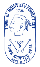 The town of Montville, Connecticut, emailed me a picture of the town flag. The flag has a white background. In the center is a circle with Chief Uncas's head facing the left. Above and below the circle are two orange ribbons. The top one reads "Montville" and the bottom one reads "Connecticut". On the left side of the flag reads "Est." and on the right side, "1786". The text is black and, like Ledyard's flag, uses the Old English Text font.
