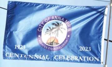 City of Anna Maria celebrated its centennial in 2023 and used a blue flag with the event printed on it: https://www.islander.org/2023/05/memorial-day-am-centennial-tributes-set/