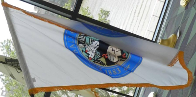 The flag of the City of Ball Ground in Georgia is white with the city seal on it: https://www.facebook.com/photo/?fbid=705777929437678&set=a.475805551255533