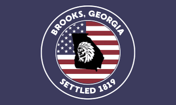 Brooks held a municipal flag design competition from January 1 to July 1, 2025. The 38 designs received were subjected to public voting from July 9 to 18. The winning flag, which received 87 of the 240 votes, was designed by Ella Robinson. According to the description in the competition voting packet, at the center of the flag is Chief McIntosh, a chief of the Creek Nation, which lived in the area before white settlers. He signifies the community’s “spirit of perseverance and brother/sisterhood.” Behind are images of Georgia and the US flag which have been altered from an old Brooks Road Race t-shirt graphic to connect the past to the present.