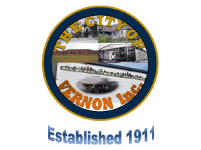 The seal shows a blue ring with a bunch of stuff in the center. In the upper half are photos of an abandoned house, The former U.S.P.S Office located in Vernon. The Vernon community center, and a photo of a family. The lower half shows the "All-Black towns of Oklahoma" sign that talks about Vernon's history. The city's name arches over the photos. Under the main device of the seal is the town's establishment year.