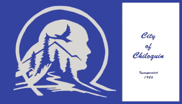 The flag of the City of Chiloquin, Oregon, is shown here: www.chiloquin.com/city.html.