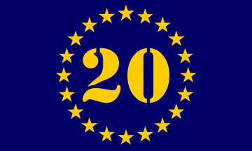 Diego, CA, in early March 2025. The flag consists of a golden number 20