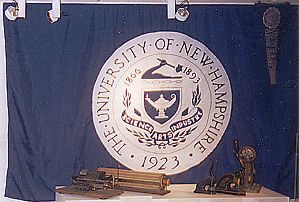"The University’s seal marks the transformation of the New Hampshire College of Agriculture and the Mechanic Arts into the University of New Hampshire. The seal depicts a respect for ancient academic traditions along with the tremendous ambition and enthusiasm of that year—1923. There are two other dates on the seal: the date the University was founded, as the New Hampshire College of Agriculture and the Mechanic Arts, in Hanover—1866; and the date the college moved to its Durham campus—1893."