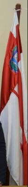 seen. A vertical red stripe is offset to the right by 1/8 of the flag's height;