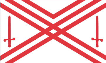 The flag was designed by Tony Burton and in his words "it blends heraldry and