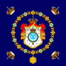 Please note that a collar was once frequent on royal standards, and a modern example would be the collar of the order of the golden fleece around the arms on the royal standard of Spain as illustrated above.