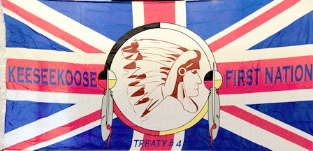 The Keeseekoose First Nation has a second flag, like many other first nations, too. It is simple Indian Head and name of the tribe in red.