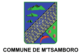 The flag is white with the coat of arms and the words "COMMUNE DE M'TSAMBORO" below: photo (2024), photo (2024).